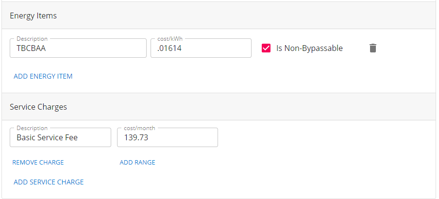 Note: Tiered rate and CPP based rate structures are not currently supported in the custom tariff tool.