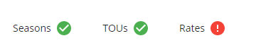 Custom tariffs are built using a combination of seasons, times of use and rates. A progress bar at the bottom of the window will show a green check for each completed item and a red ! for any section that is incomplete.
