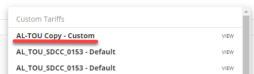 For some users, beginning with an existing tariff and making a few minor changes may be the fastest way to create a new custom tariff. To begin with an existing tariff, first choose View next the utility tariff in the Tariff dropdown menu.