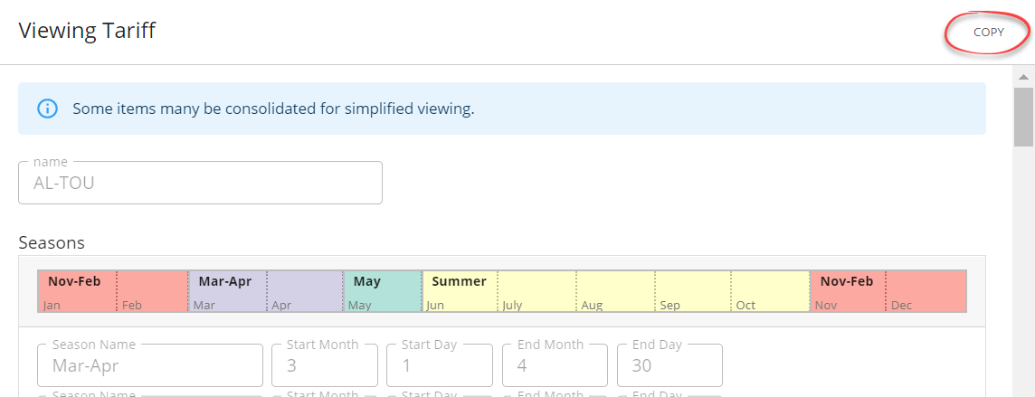 A Copy button will appear in the right corner of viewing window if that tariff is eligible for duplication.