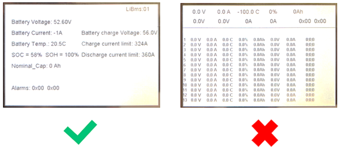 - The batteries must be within +/-0.5V of each other before commissioning. Groups of 4 batteries or more may require a narrower voltage range to commission properly.