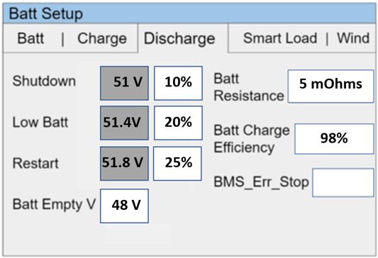 Note: Change the programming from Percentage to Voltage in the Battery setup menu. (Use Batt % Charge / Use Batt V charge)