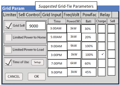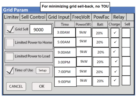 - You may also want to enable a grid charge the hour before the time-of-use period to ensure the battery reaches 100%