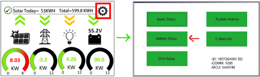 1. To program the inverter using the Sol-Ark inverter screen, go to battery