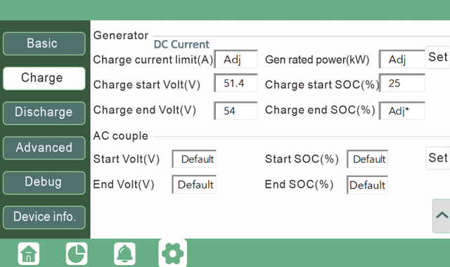 AC Input Mode | Grid Tied (default, adjust as needed) |