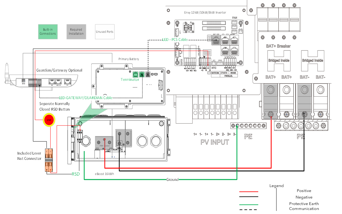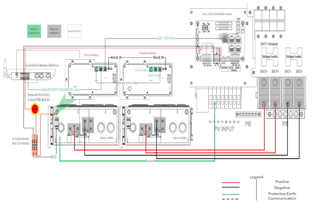 Two or more eBoost Batteries and Envy Inverter Electrical Connection Overview