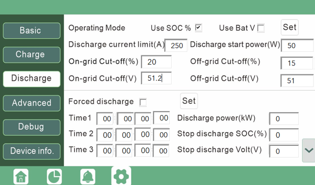 For example, if you have four eBoost and one Sol-Ark 12K inverter, based on the size of the battery bank, 'Max A Charge' and 'Max A discharge' should be 250A each. But Sol-Ark 12K can only carry 185A DC going to or coming from the battery. So, in this case, both 'Max A Charge' and 'Max A Discharge' would be set to 185A.