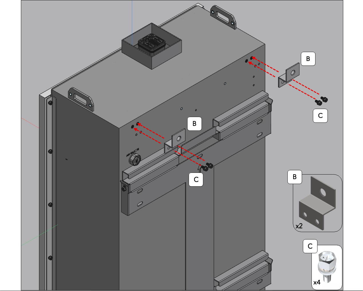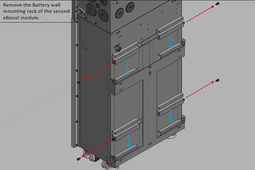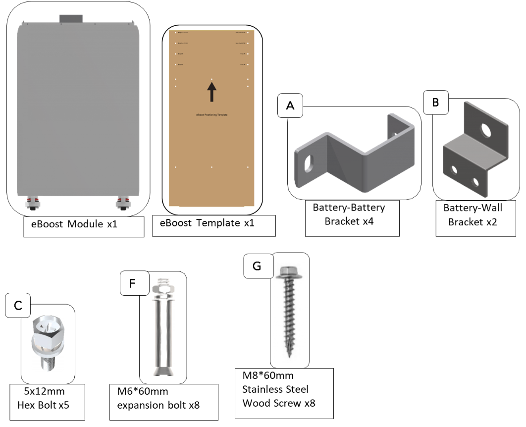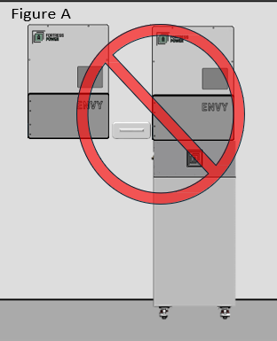 Figure A. The eBoost maximum discharge current is 250A continuous. Each Envy 8k/10k/12k/Envy 21 Duo maximum continuous output is 167A/210A/ 250A/250A Respectively Use always 1:1 ratio when paring an eBoost with any model of the Envy inverters. Figure B. Do not mount a battery in front of another eBoost when hanging the eBoost on the wall as this can cause damage to both the wall and the battery. | ||