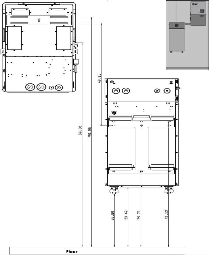 Envy 8k/10k right side Installation measurements (Floor Mounted) |