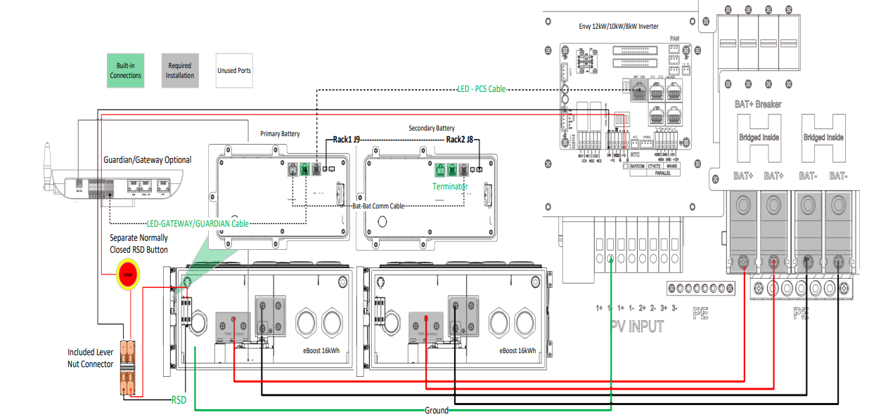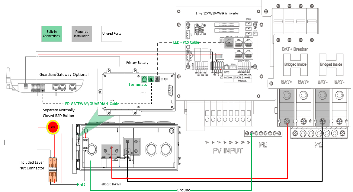 One eBoost 16kWh with two Envy inverters /Two front mounted batteries | Notes | |