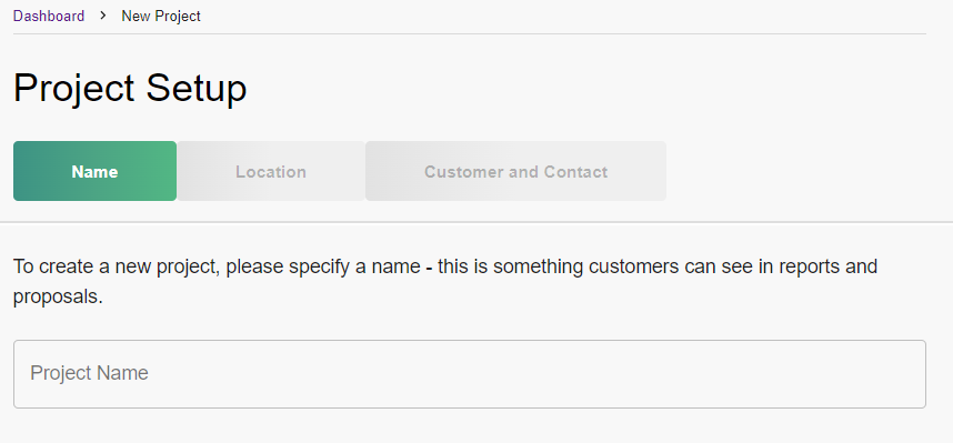 Clicking on Create New Project on the dashboard initiates the new project wizard: