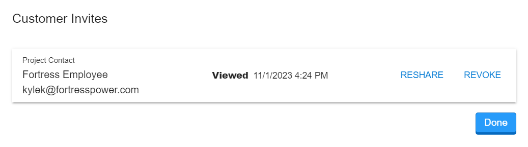Customer Invitations: opens a dialog that lists all of the invitations that have been sent for this scenario; invitations can be reset or revoked from here.